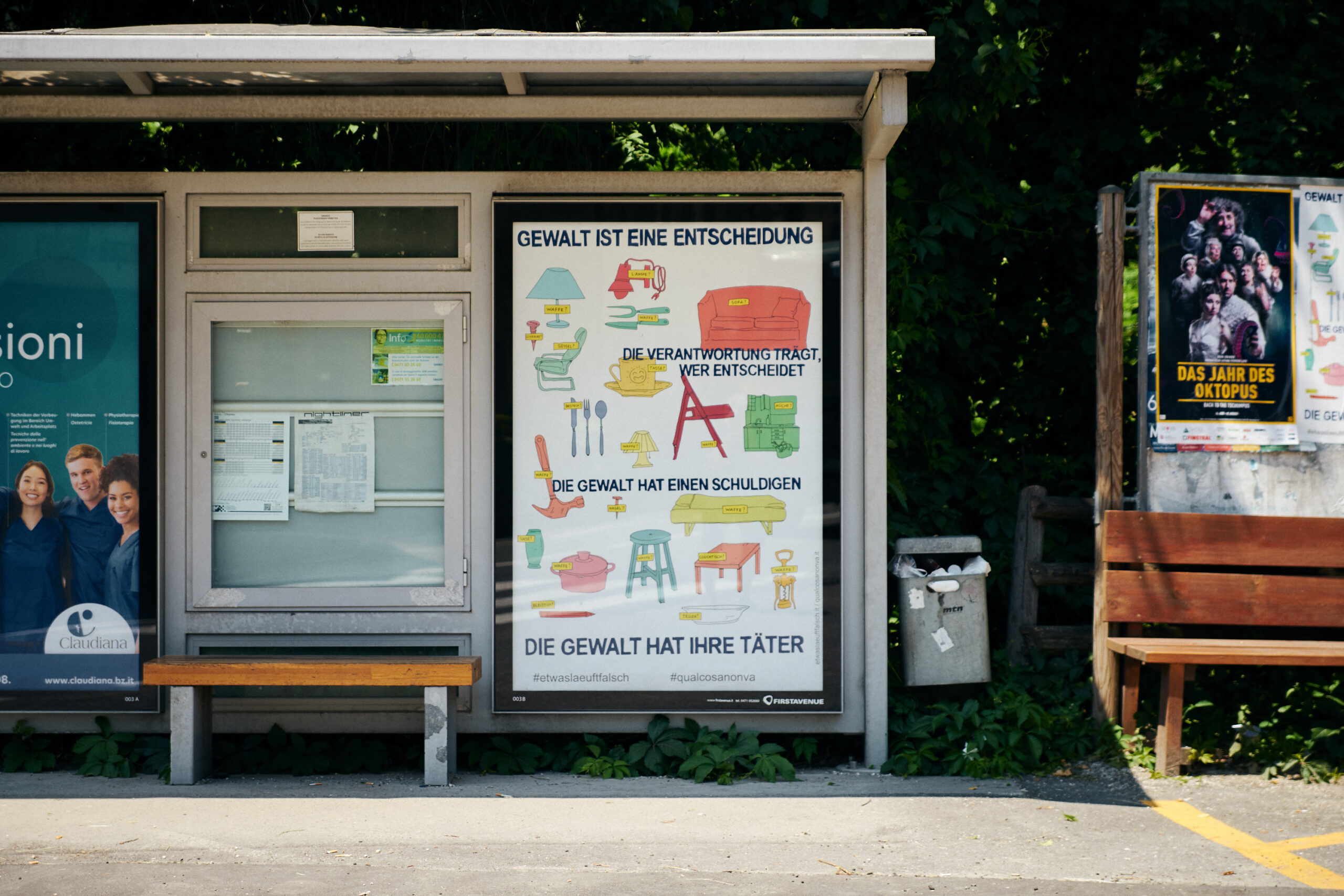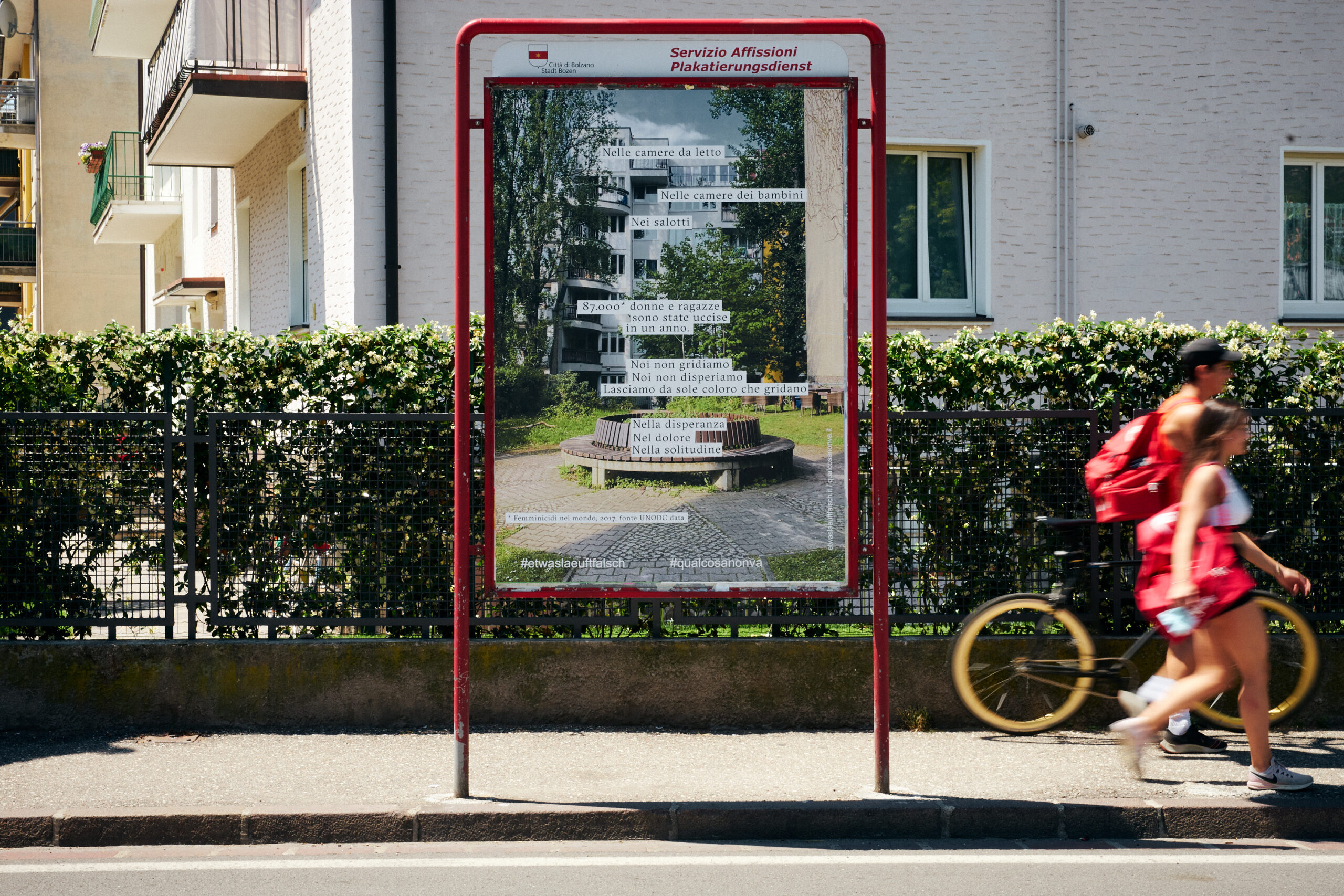 La serie di poster affronta il tema del femminicidio, richiamando l’attenzione sulle gerarchie che si nascondono dietro agli atti di violenza. La violenza contro le donne è spesso il risultato di una frustrazione accumulata che si scatena contro una controparte apparentemente più debole. L’allusione a una leggenda popolare localizza questa campagna sul territorio e allo stesso tempo chiama in causa un’altra triste realtà, ossia che molte relazioni iniziano come favole prima di trasformarsi nel loro contrario.